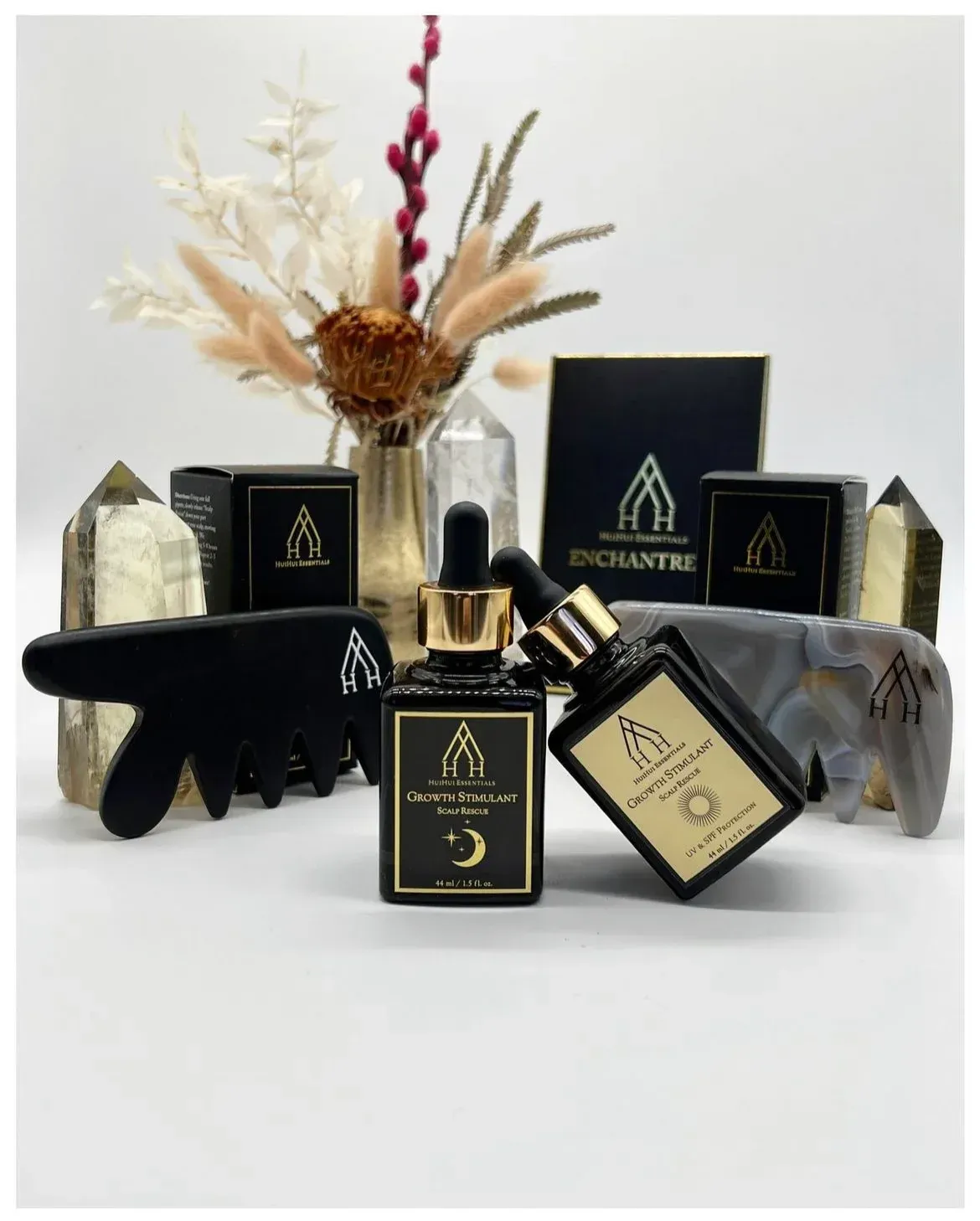 a non-toxic, non-GMO, ritualistic hair growth stimulant that simultaneously repairs scalp conditions.